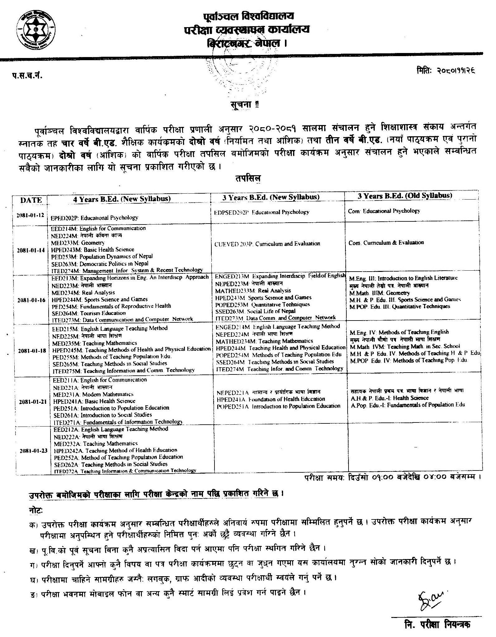 BEd 2nd Year Exam Schedule Has Been Published.