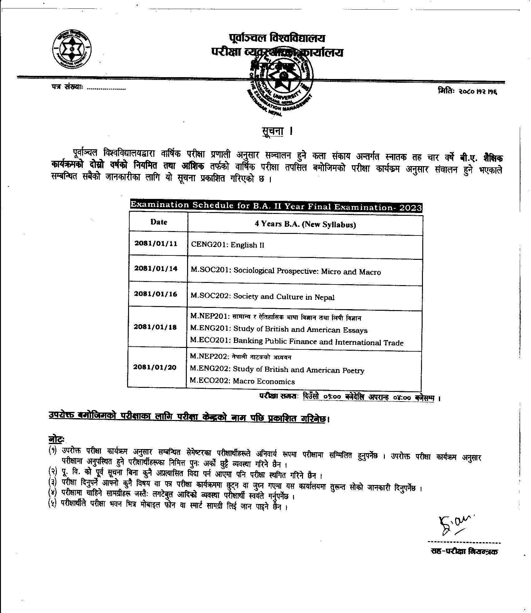 BA 2nd Year Exam Schedule Has Been Published