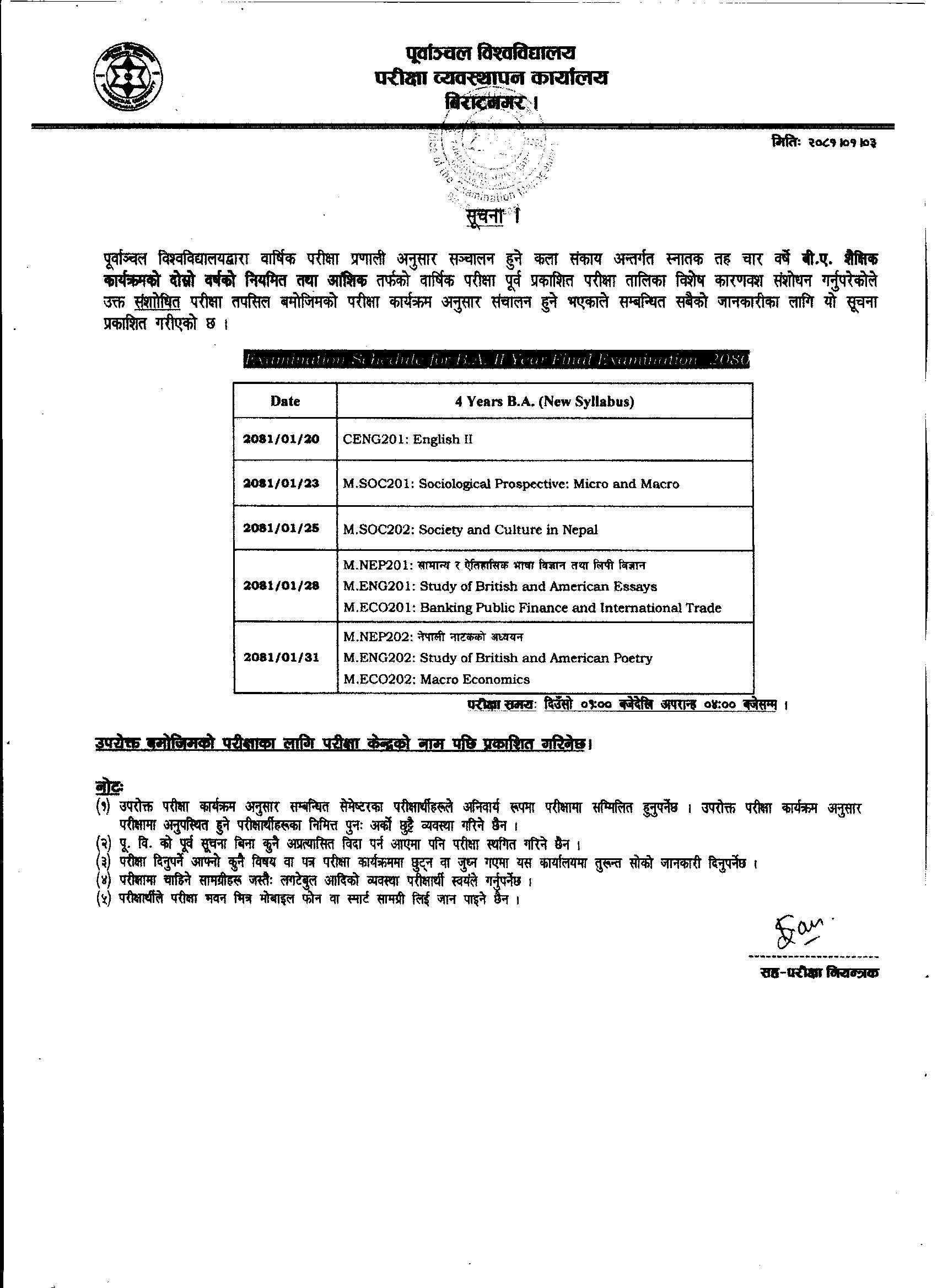 Revised exam schedule has been published for BA 2nd Year.