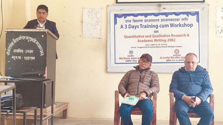 We are proud to share glimpses from our 3 Days Training cum Workshop on Quantitative and Qualitative Research & Academic Writing - 2082, held at the Program Hall of Karfok Bidhya Mandir Multiple Campus.